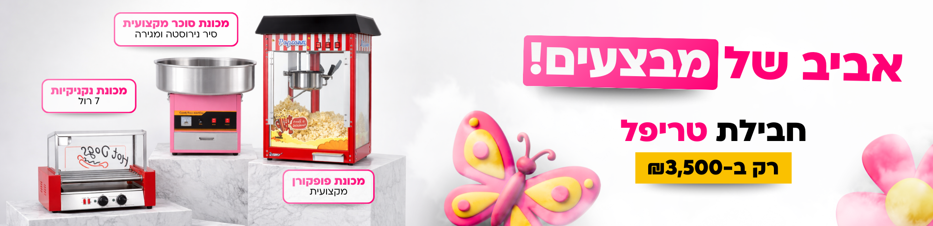עגלת אירועים מתקפלת + 3 מכונות (פופקורן+סוכר+נקניקיות)